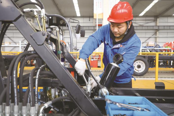 28日,海安市李堡鎮(zhèn),南通明諾電動(dòng)科技股份有限公司車間內(nèi),工人正在加緊趕制各類電動(dòng)掃地機(jī)、高壓沖洗車等環(huán)衛(wèi)設(shè)備訂單,確保達(dá)成首季度生產(chǎn)目標(biāo)。 濮端建攝