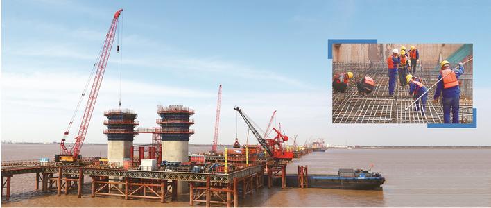 清明小長假,崇啟公鐵長江大橋建設工地上的工人們放棄休息堅守崗位,無論是大橋主通航孔橋3號主墩,還是非通航孔橋、公鐵合建引橋、單建鐵路引橋,到處都是一派熱火朝天的施工場景。