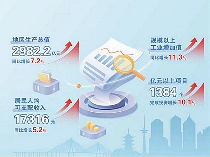 根據(jù)地區(qū)生產(chǎn)總值統(tǒng)一核算結(jié)果,一季度全市實(shí)現(xiàn)地區(qū)生產(chǎn)總值2982.2億元,按可比價(jià)格計(jì)算,同比增長7.2%。分產(chǎn)業(yè)看,第一產(chǎn)業(yè)增加值69.5億元,增長1.4%;第二產(chǎn)業(yè)增加值1465.2億元,增長8.8%;第三產(chǎn)業(yè)增加值1447.5億元,增長6.0%。