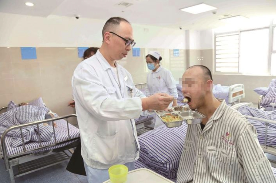 比徐金華從業(yè)資歷還深的張?jiān)魄逋瑯佑幸桓睙嵝哪c,照護(hù)普通精神科病員已有10余年?!安^(qū)是封閉管理的,病人常年吃食堂,我怪心疼他們的。一得空,我就想著給他們做點(diǎn)好吃的?!睆?jiān)魄逭f(shuō),他時(shí)不時(shí)會(huì)從家里燒點(diǎn)紅燒肉帶過(guò)來(lái),每次看著病人大口品嘗,心里有說(shuō)不出的開心。