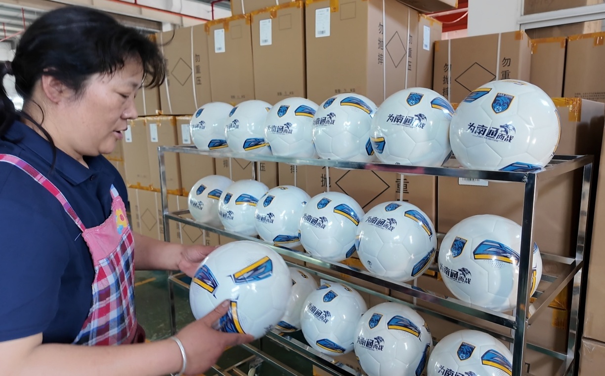 與希諾隔條街的南通夏克體育用品有限公司也敏銳地捕捉到商機。作為南通唯一獲得FIFA認證的足球生產(chǎn)商,曾連續(xù)四屆為世界杯提供官方禮品用球。公司負責(zé)人表示:“‘蘇超’的火爆讓我們訂單激增,目前正在加緊生產(chǎn)聯(lián)賽定制用球,包括為南通本土球隊支云、珂締緣等提供專業(yè)訓(xùn)練用球。”