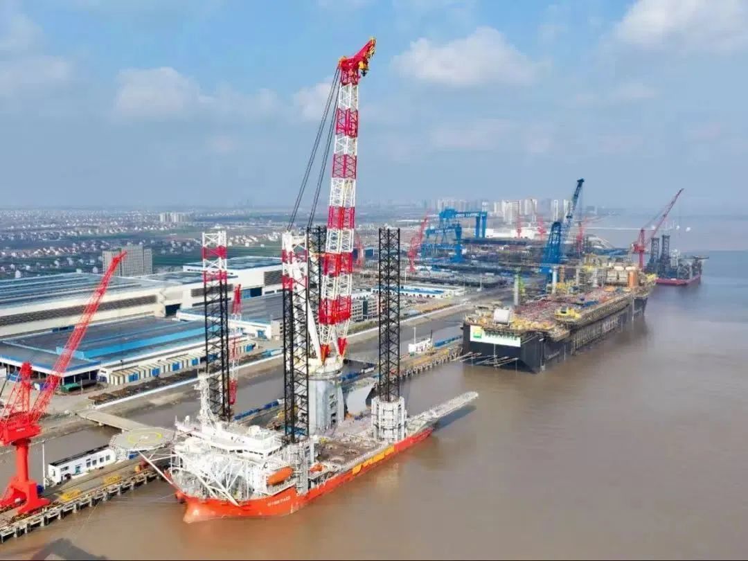 走進南通啟東中遠(yuǎn)海運海洋工程有限公司的船塢內(nèi),焊花飛濺、塔吊林立,工人正在趕制丹麥客戶定制的第二艘NG20000型風(fēng)電安裝船?!爸腔鄱悇?wù)的迭代升級,讓我們從‘政策紅利’中嘗到了‘效率甜頭’!”中遠(yuǎn)財務(wù)負(fù)責(zé)人于松鶴說。