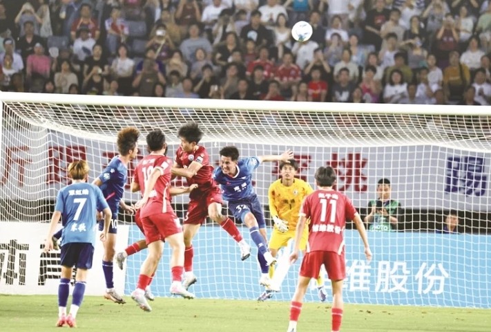 頂部昨晚,江蘇省城市足球聯(lián)賽(蘇超)第六輪焦點(diǎn)戰(zhàn)在徐州市奧體中心體育場(chǎng)打響,此前四戰(zhàn)全勝的南通隊(duì)客場(chǎng)挑戰(zhàn)同樣保持不敗的徐州隊(duì)。憑借高效的進(jìn)攻和穩(wěn)固的防守,南通隊(duì)以2∶1力克對(duì)手,豪取五連勝,并以15分反超鹽城隊(duì),登頂積分榜。 記者 徐培欽攝