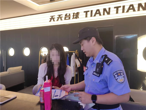 頂部6月30日晚上,啟東市公安局匯龍鎮(zhèn)中心派出所針對轄區(qū)KTV、臺球館等人員密集場所,組織民警開展“沉浸式”反詐宣傳活動,通過發(fā)放宣傳冊、現(xiàn)場講解案例等方式,為娛樂場所從業(yè)者及消費者送上防騙“錦囊”,切實守護群眾財產(chǎn)安全。