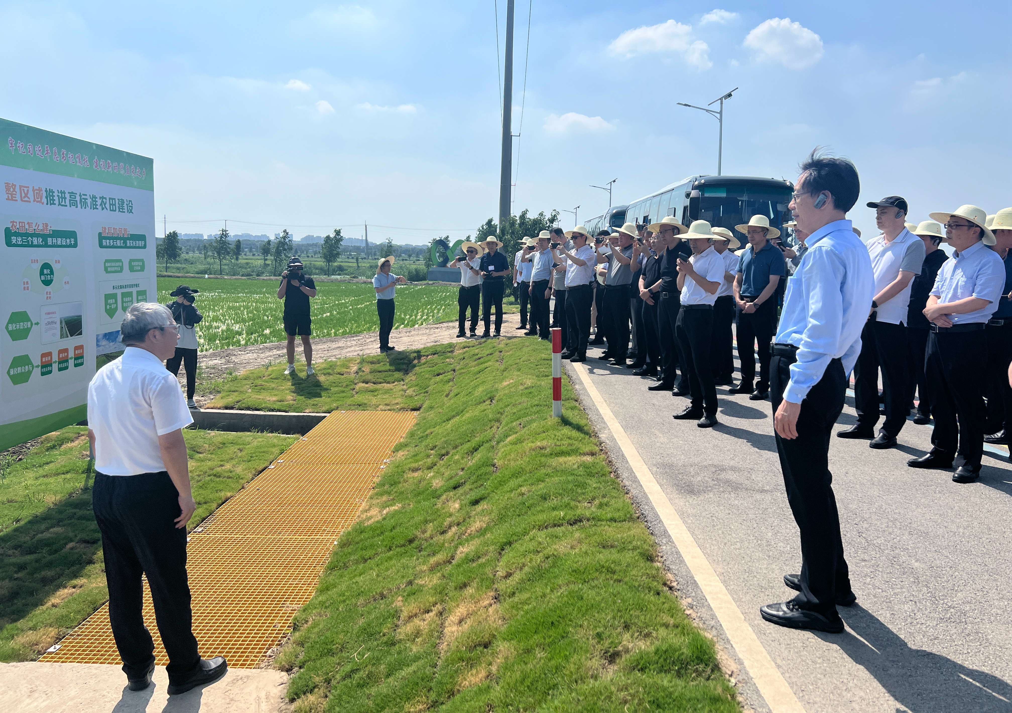 7月3日下午,與會(huì)代表步入通州區(qū)金沙街道的高標(biāo)準(zhǔn)農(nóng)田萬(wàn)畝示范方,“田成方、路成網(wǎng)、渠相連”的現(xiàn)代農(nóng)業(yè)圖景撲面而來(lái),株株秧苗挺立如劍,與鋪設(shè)的自動(dòng)化灌溉設(shè)備相映成趣。