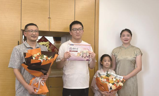 張栩是通州高級中學(xué)高三(6)班的畢業(yè)生,今年高考取得了683分的好成績,通過“強(qiáng)基計劃”被清華大學(xué)理論與應(yīng)用力學(xué)專業(yè)錄取。在父母、妹妹的簇?fù)硐虏痖_快遞,翻看著錄取通知書,張栩臉上露出淡定的微笑。他坦言,得知自己錄取清華時并不感到意外,“高考發(fā)揮穩(wěn)定,強(qiáng)基的筆試面試成績也都不錯”。張栩平時化學(xué)、生物兩科比較拔尖,在高考中,他物理獲得了100分,語文也超常發(fā)揮取得125分。