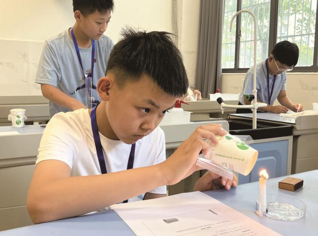 本網(wǎng)訊 18日,2025年南通市中小學(xué)生實(shí)驗(yàn)?zāi)芰Υ筚悰Q賽在南通田家炳中學(xué)舉行。來自南通市各地的128名選手分組同臺(tái)競技,比拼科學(xué)素養(yǎng),爭奪代表南通參加8月中旬省級總決賽的16個(gè)名額。