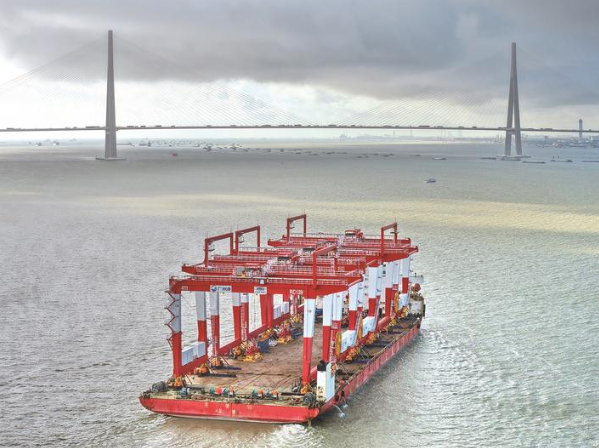 昨天,“厚德198”輪裝載著廣州南沙5臺(tái)雙懸臂自動(dòng)化軌道吊緩緩駛離振華南通分公司碼頭,前往南沙四期全自動(dòng)化碼頭。該項(xiàng)目吊具下額定負(fù)載41噸,跨距31米,起升高度18.1米。這批設(shè)備的投入使用將大幅提升南沙四期全自動(dòng)化碼頭的集裝箱吞吐能力,增強(qiáng)南沙港在區(qū)域港口競(jìng)爭(zhēng)中的優(yōu)勢(shì)。 記者許叢軍