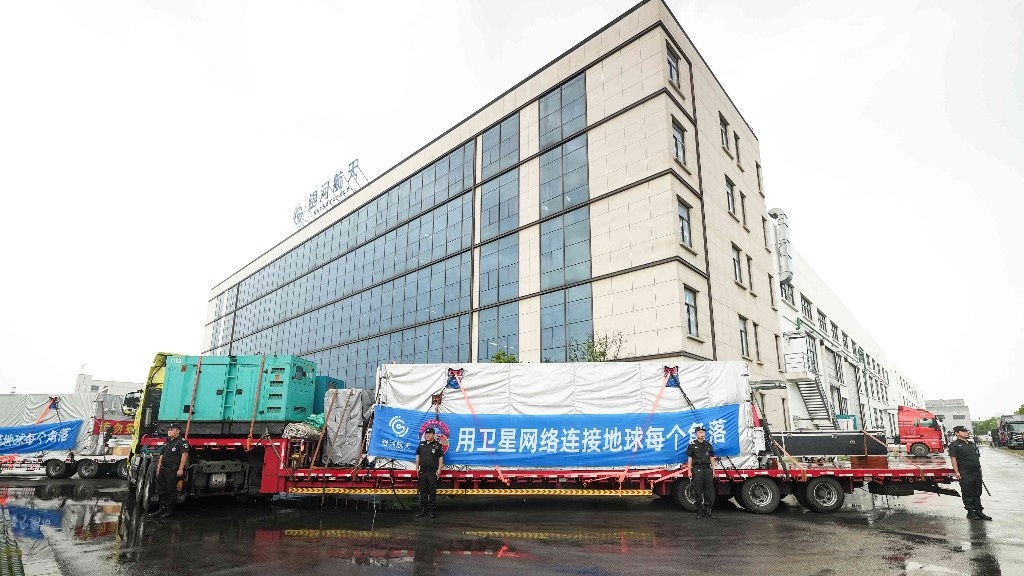 從銀河航天南通衛(wèi)星智慧工廠運出的衛(wèi)星即將送往發(fā)射點。銀河航天供圖