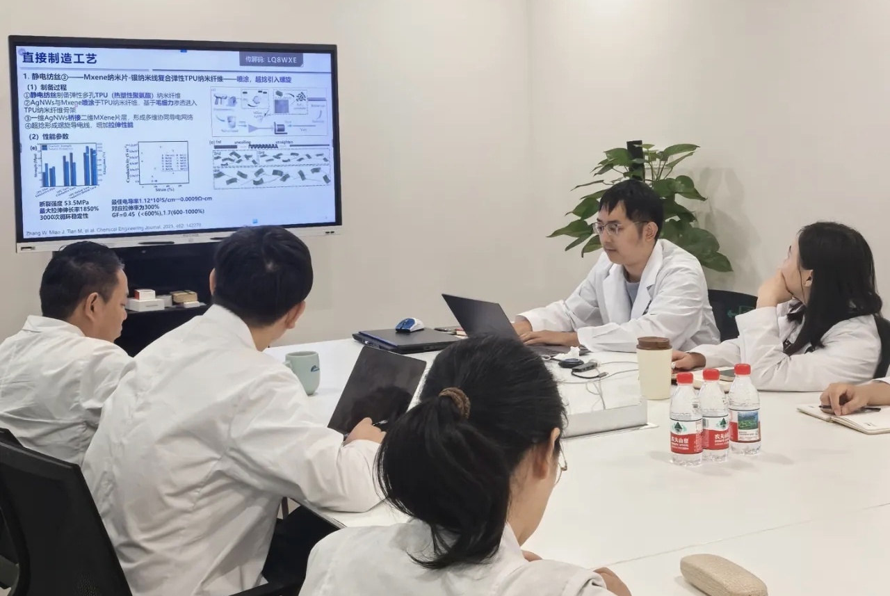 一個多月的時間里,周海根據(jù)企業(yè)需求完成導電纖維導電原理、應用要求、制備工藝、結構設計等方面的調(diào)研,閱讀30篇文獻后完成30頁PPT和7300字的技術報告,為公司提出了導電纖維性能提升路線和基底更換可行性分析,并拍攝了一期關于導電纖維在智能可穿戴設備中應用的科普視頻。