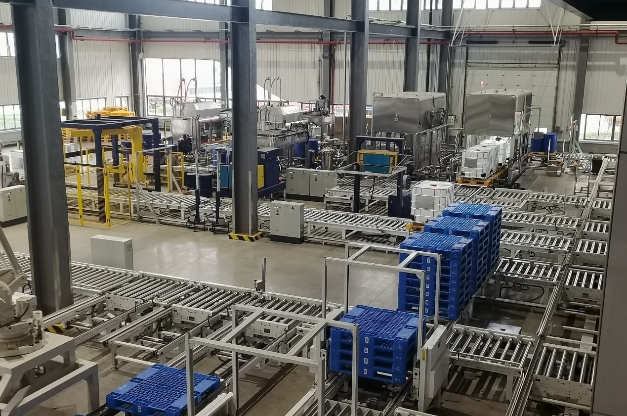 8月7日,走進江山股份水劑智造車間,碼垛機器人精準抓取產(chǎn)品的場景映入眼簾。四條自動化包裝線正高速運轉(zhuǎn),輸送帶載著一箱箱封裝好的產(chǎn)品平穩(wěn)前行,經(jīng)升降機精準輸送至26米高的智能立體倉庫,12層貨架、2萬多個貨位在智能調(diào)度系統(tǒng)指揮下實現(xiàn)精準存取。