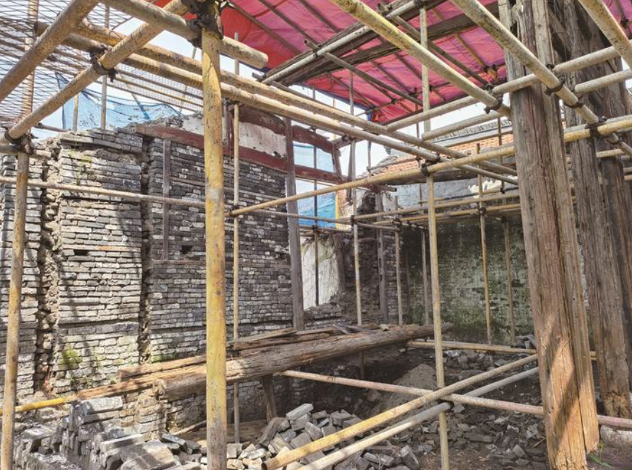 在寺街61號管仲謙故居修繕現(xiàn)場,腳手架林立,工人們正為梁架編號、清理舊磚瓦,一派忙碌的景象?!拔覀兊谋Wo性修繕遵循‘見人見物見生活,留形留神留鄉(xiāng)愁’的理念,力求不改變建筑原有的形制、結(jié)構(gòu)和歷史特征?!狈缎路鍙娬{(diào),“保存完好的構(gòu)件一律保留,損壞部分則采用原材質(zhì)、原工藝進行修復(fù)或更換,目標以最小干預(yù)實現(xiàn)最大程度的歷史風(fēng)貌還原。”