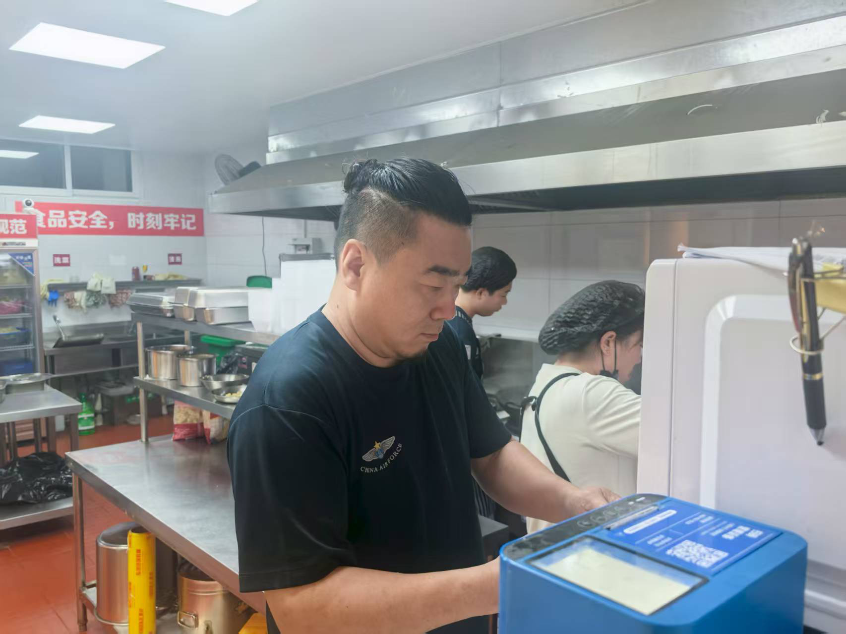 “做飯店和食堂模式不同?!睏畈Q定將軍人標(biāo)準(zhǔn)引入管理:廚師早上7點(diǎn)就準(zhǔn)時(shí)到位;桌椅擺放整齊劃一;食材收儲(chǔ)嚴(yán)格按照標(biāo)準(zhǔn)流程……