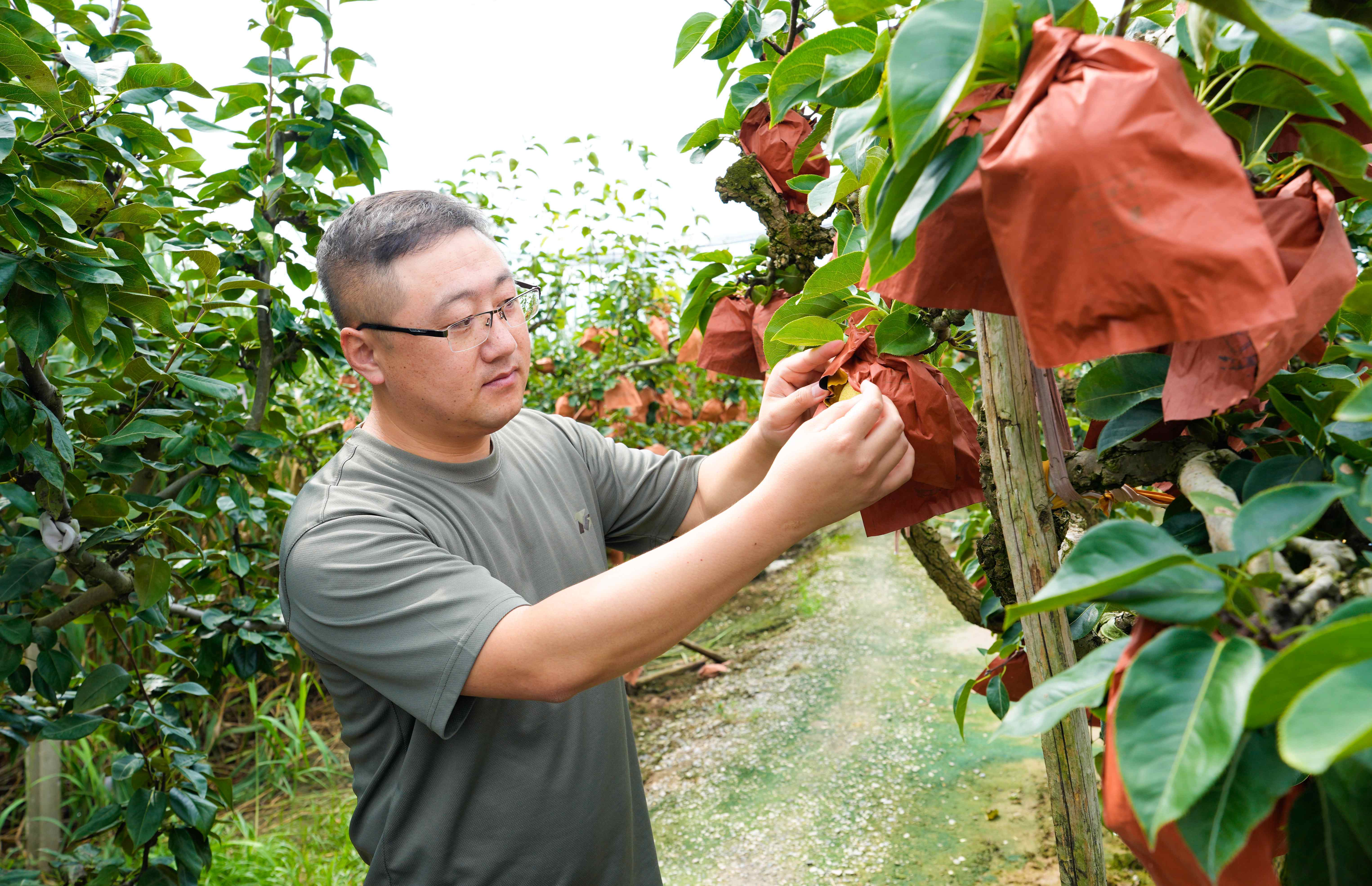 為了改變這一狀況,2019年起,村“兩委”多次前往浙江安吉、常州、無(wú)錫等地考察學(xué)習(xí),先后引進(jìn)了翠冠梨、圓黃梨、秋月梨、中華丑梨等多個(gè)優(yōu)質(zhì)梨品種,并配套引入“果實(shí)套袋”“生物防蟲(chóng)”“老樹(shù)嫁接”等先進(jìn)種植技術(shù),讓日益黯淡的“搖錢(qián)樹(shù)”重新煥發(fā)出新的生機(jī)?!艾F(xiàn)在我們村單梨果的采摘期就能從7月一直持續(xù)到9月,并且口感豐富,可以滿(mǎn)足不同消費(fèi)者的喜好?!瘪T金輝笑著說(shuō),眼下,這場(chǎng)甜蜜接力賽正在火熱進(jìn)行中,“8月17日左右圓黃梨就熟了,9月主打秋月梨,明年10月還有中華丑梨排隊(duì)登場(chǎng),從夏到秋,都有好果子!”