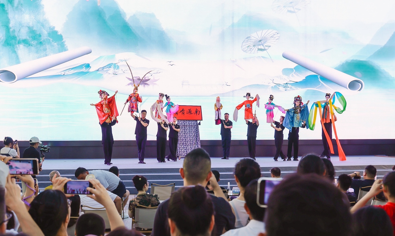 打開南通的方式不止于此。主舞臺上,南通文旅推介官張春燕以“狀元郎”“冠軍侯”“老壽星”“俏織娘”“品鮮客”“潮玩族”等六種形象生動(dòng)登場,向觀眾娓娓道來南通的歷史人文與潮流玩法。南通非遺杖頭木偶、雜技等表演輪番登場,點(diǎn)燃現(xiàn)場氛圍;尤其當(dāng)梅庵古琴的寬厚灑脫與蘇州評彈的溫婉靈動(dòng)相遇,通蘇文化交融碰撞演繹出別樣韻味,贏得觀眾陣陣掌聲。