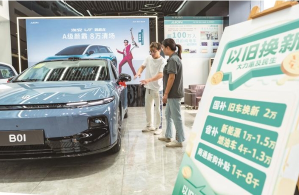 昨天,顧客在海安經(jīng)濟(jì)技術(shù)開發(fā)區(qū)一家汽車銷售門店內(nèi)了解選購汽車,咨詢“以舊換新”補(bǔ)貼政策。今年以來,海安市汽車消費(fèi)市場(chǎng)持續(xù)活躍,眾多車企推出優(yōu)惠補(bǔ)貼并疊加國(guó)家補(bǔ)貼政策和地方補(bǔ)貼政策,購車優(yōu)惠力度進(jìn)一步加大,吸引眾多消費(fèi)者進(jìn)店咨詢選購,成為拉動(dòng)消費(fèi)增長(zhǎng)的重要引擎。 翟慧勇攝